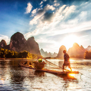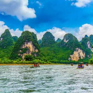 【漓江】:第一次来桂林首选—漫游漓江,如果想从桂林到阳朔,推荐坐游船全景游,如果想游漓江漂流兴坪-九马画山精华段,就推荐坐竹筏,都非常惬意。